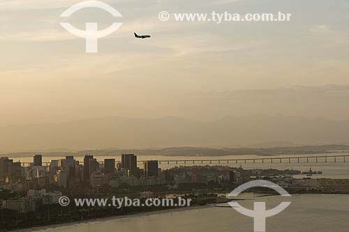 •  Assunto: Avião sobrevoando cidade do Rio de Janeiro com prédios da Praia do Flamengo e Centro  / Local: Rio de Janeiro - RJ - Brasil / Data: 10/2010