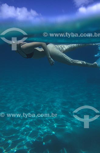 •  Assunto: Mulher mergulhando na Baía do Sancho  / Local:  Fernando de Noronha - Pernambuco - PE - Brasil  / Data: