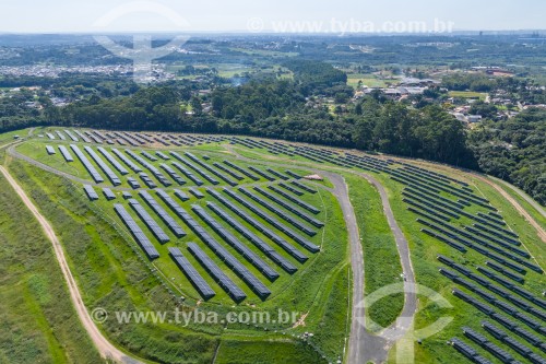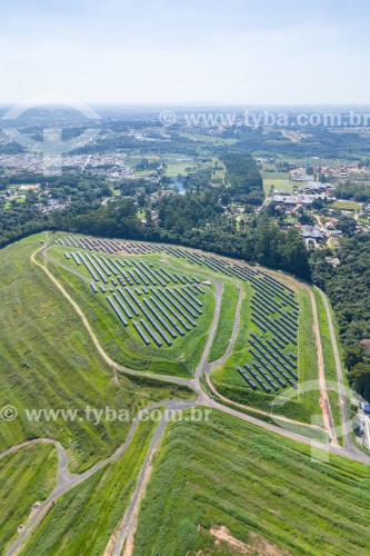 Foto feita com drone da Pirâmide Solar do Caximba (usina de energia solar) - Antigo Aterro Sanitário da Caximba - Curitiba - Paraná (PR) - Brasil