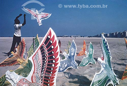 Assunto: Vendedor de pipa na praia de Copacabana / Local: Rio de Janeiro (RJ) - Brasil / Data: Década de 70