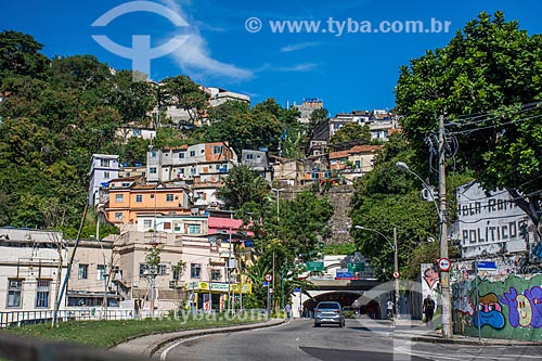 Entrada do Túnel Alaor Prata (1892) - mais conhecido como Túnel Velho - com a Favela Ladeira dos Tabajaras - Rio de Janeiro - Rio de Janeiro (RJ) - Brasil