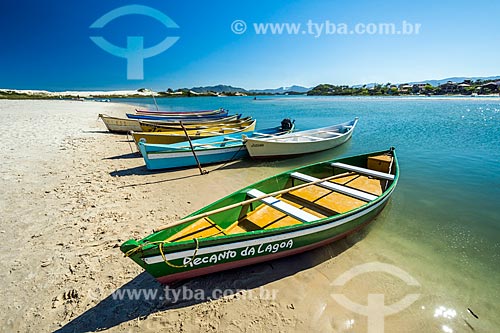 Canoas atracadas na foz do Rio da Madre - Praia da Guarda do Embaú no Parque Estadual da Serra do Tabuleiro - Palhoça - Santa Catarina (SC) - Brasil