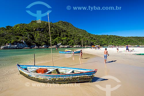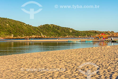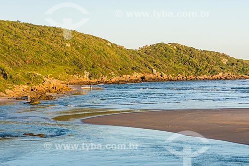Traineira na foz do Rio da Madre - Praia da Guarda do Embaú no Parque Estadual da Serra do Tabuleiro - Palhoça - Santa Catarina (SC) - Brasil