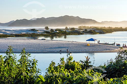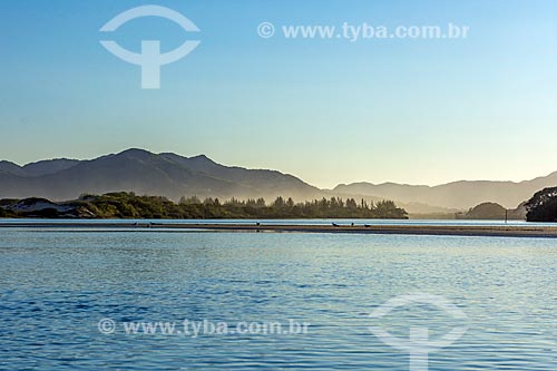 Vista do pôr do sol a partir da foz do Rio da Madre na Praia da Guarda do Embaú - Parque Estadual da Serra do Tabuleiro - Palhoça - Santa Catarina (SC) - Brasil