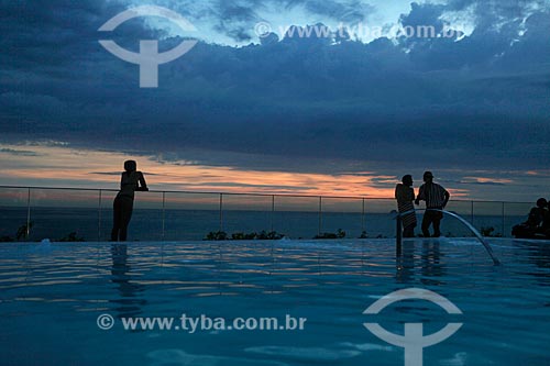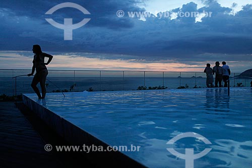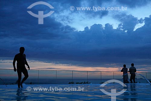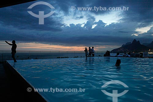 •  Assunto: Silhueta de pessoas aproveitando o entardecer na cobertura do Hotal Fasano na orla de Ipanema - com piscina em primeiro plano - uso somente sob consulta prévia / Local: Rio de Janeiro - RJ - Brasil  / Data: 24/02/2010