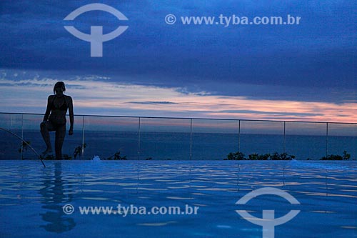 •  Assunto: Silhueta de banhista aproveitando o entardecer na cobertura do Hotel Fasano na orla de Ipanema - com piscina em primeiro plano - uso somente sob consulta prévia / Local:  Rio de Janeiro - RJ - Brasil  / Data: 24/02/2010