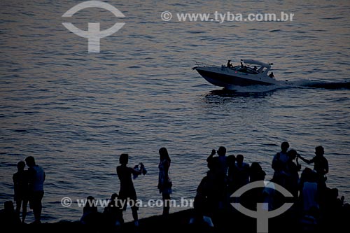 •  Assunto: Silhueta de pessoas aproveitando o entardecer na cobertura do Hotel Fasano na orla de Ipanema - com piscina em primeiro plano - uso somente sob consulta prévia / Local:  Rio de Janeiro - RJ - Brasil  / Data: 24/02/2010