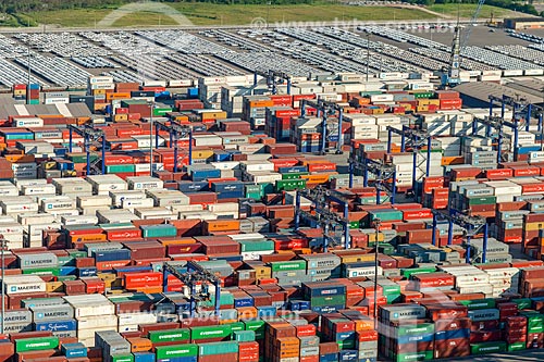 Foto aérea do Terminal de Contêineres do Porto de Paranaguá - Paranaguá - Paraná (PR) - Brasil