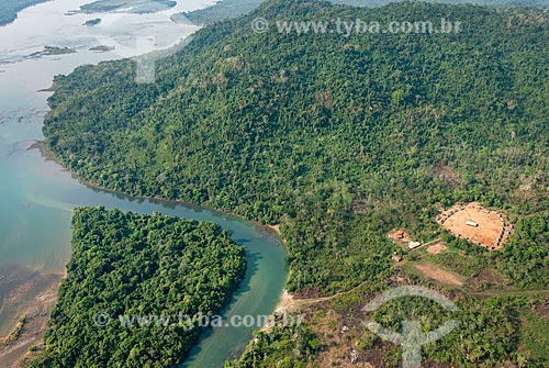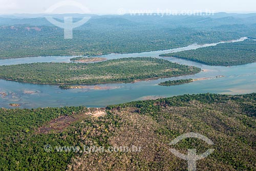 •  Foto aérea de clareira na Floresta Amazônica para remoção de madeira e agricultura de subsistência próximo à Aldeia Moikarakô - Terra Indígena Kayapó  - São Félix do Xingu - Pará (PA) - Brasil