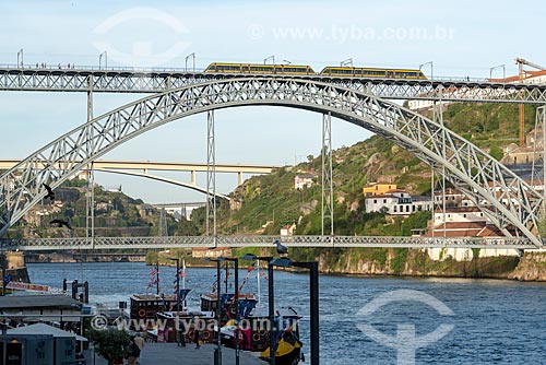Vista do metrô transitando na Ponte de Dom Luís I (1888) sobre o Rio Douro - Porto - Distrito do Porto - Portugal