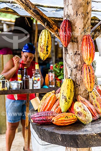 Detalhe de cacau ainda no cacaueiro (Theobroma cacao) próximo à Cachoeira do Cleandro - Itacaré - Bahia (BA) - Brasil