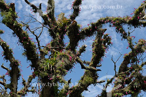 Bromeliads Tillandsia stricta blooming in a tree of the Atlantic rainforest by Pontal road, western Rio de Janeiro city, Rio de Janeiro State, Southeastern Brazil. - Rio de Janeiro - Rio de Janeiro