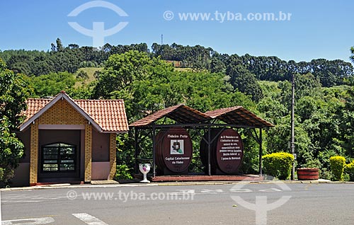 Pórtico da cidade de Bento Gonçalves (1985) - em forma de pipa (barril) - Bento Gonçalves - Rio Grande do Sul (RS) - Brasil