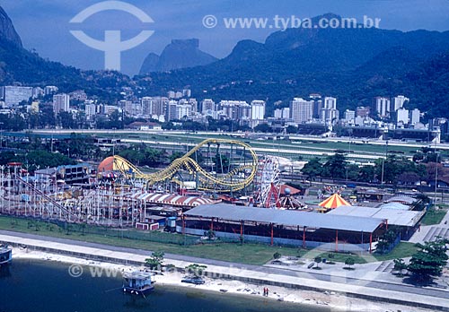 •  Foto aérea do Tivoli Parque - década de 90 - com a Pedra da Gávea ao fundo  - Rio de Janeiro - Rio de Janeiro (RJ) - Brasil