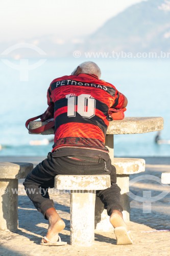 Torcedor vestido com a camisa do Clube de regatas do Flamengo na Praia do Diabo - Rio de Janeiro - Rio de Janeiro (RJ) - Brasil