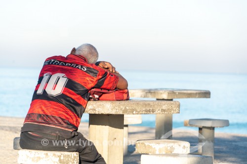 • Torcedor vestido com a camisa do Clube de regatas do Flamengo na Praia do Diabo - Rio de Janeiro - Rio de Janeiro (RJ) - Brasil