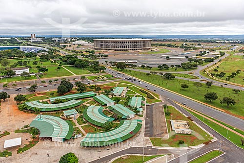 Vista da feira de artesanato da Torre de TV de Brasília a partir da Torre de TV de Brasília com o Estádio Nacional de Brasília Mané Garrincha (1974) ao fundo - Brasília - Distrito Federal (DF) - Brasil