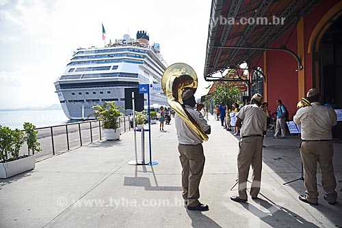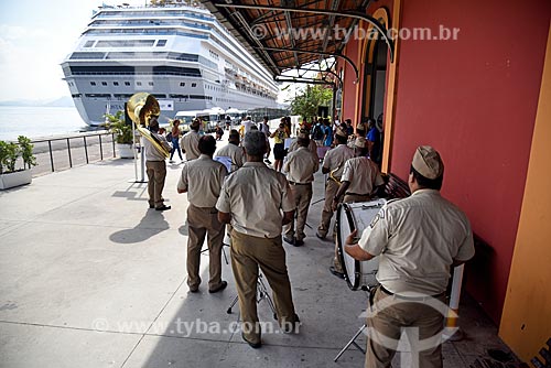 •  Banda marcial da Guarda Municipal tocando para passageiros no Píer Mauá  - Rio de Janeiro - Rio de Janeiro (RJ) - Brasil