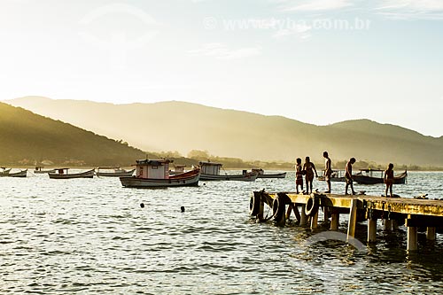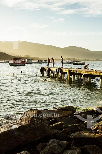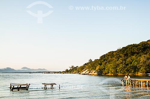Assunto: Pessoas sobre trapiche na Praia da Armação / Local: Florianópolis - Santa Catarina (SC) - Brasil / Data: 04/2014