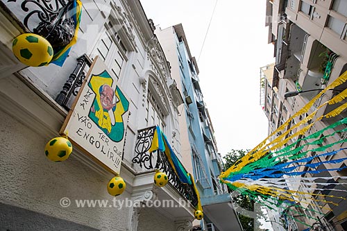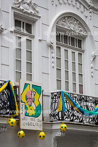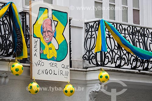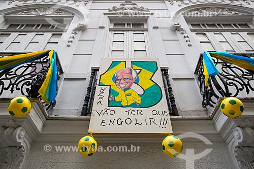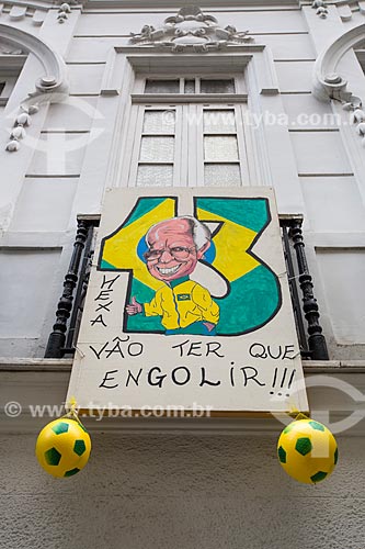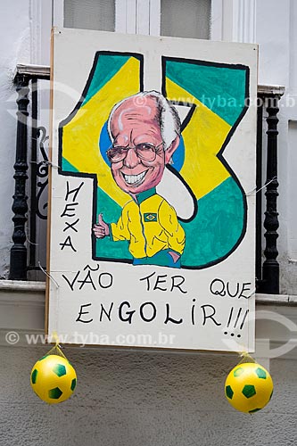 Assunto: Cartaz com os dizeres "Hexa, Vão ter que me Engolir" com a caricatura de Mário Jorge Lobo Zagallo, ex-jogagor e treinador da seleção brasileira de futebol na Rua Corrêa Dutra / Local: Catete - Rio de Janeiro (RJ) - Brasil / Data: 06/2014