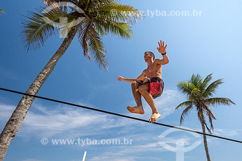 •  Praticante de slackline na orla da Praia de Ipanema  - Rio de Janeiro - Rio de Janeiro (RJ) - Brasil