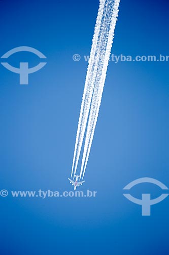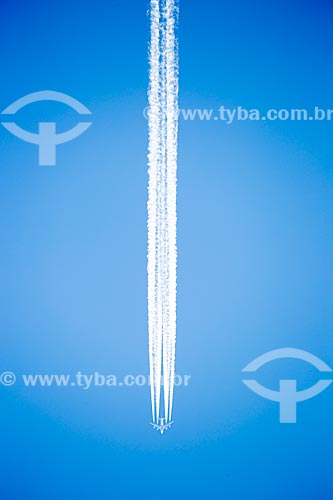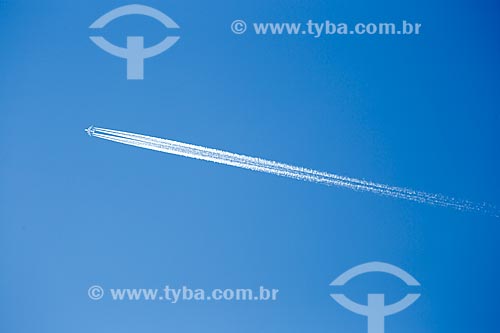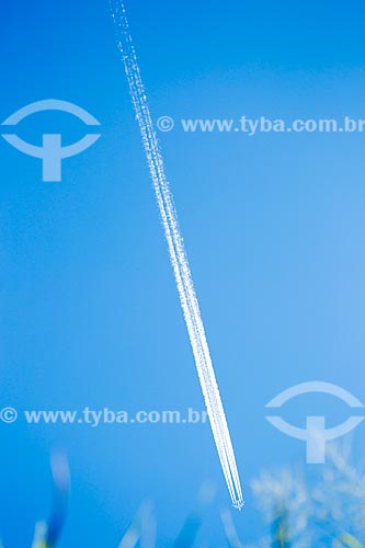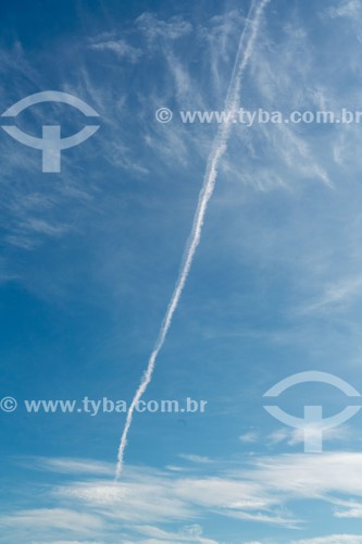 • Trilha de condensação de avião no céu - Rio de Janeiro - Rio de Janeiro (RJ) - Brasil