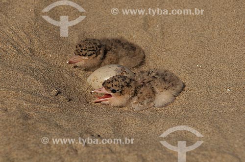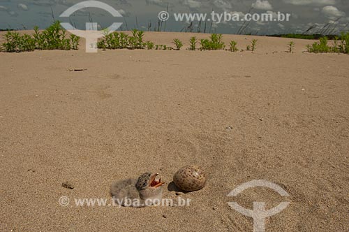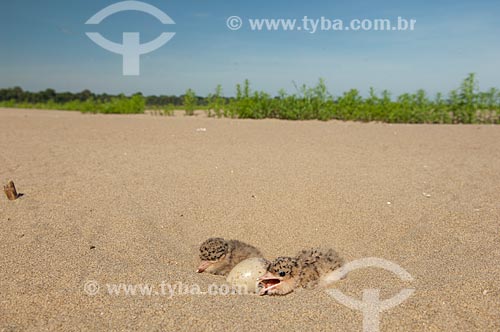 Assunto: Filhote de trinta-réis-grande ou gaivota (Phaetusa simplex) / Local: Praia do Tapiira - Rio Japurá - Reserva de Desenvolvimento Sustentável Amanã - Amazonas - AM - Brasil / Data: 2007