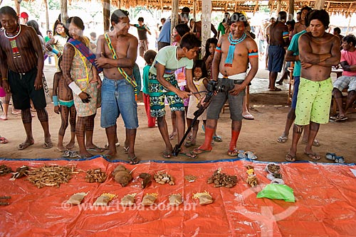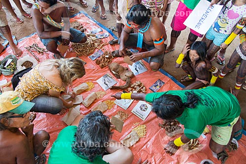 Feira de troca de sementes na Aldeia Moikarakô - Terra Indígena Kayapó - com a participação de outras tribos e etnias - São Félix do Xingu - Pará (PA) - Brasil