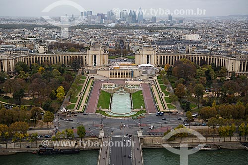Vista de cima do Jardins du Trocadéro (Jardim do Trocadero) a partir da Torre Eiffel - Paris - Paris - França