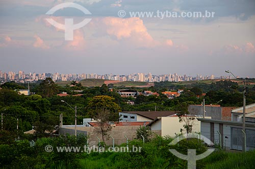 Casas na margem da rodovia SP-304 com a cidade de Piracicaba ao fundo - Piracicaba - São Paulo (SP) - Brasil