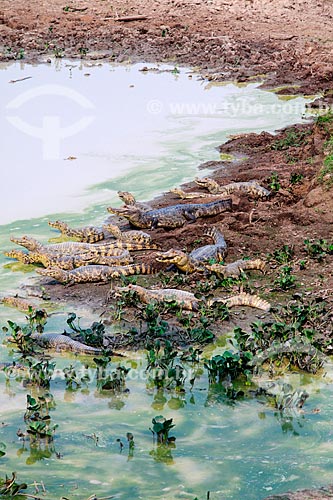 Filhotes de jacaré às margens do Rio Guaporé proximo à Fazenda Pau DÓleo e da Reserva Biológica do Guaporé - São Francisco do Guaporé - Rondônia (RO) - Brasil