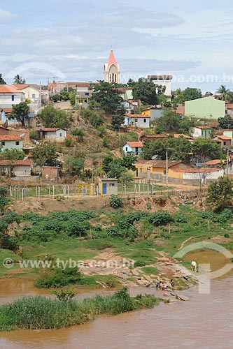 Assunto: Vista do Rio Araçuaí com casas simples ao fundo / Local: Araçuaí - Minas Gerais (MG) - Brasil / Data: 11/2011