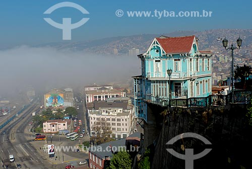 •  Assunto: Vista da cidade de Valparaíso a partir do  Cerro Artillería (Morro Artilharia) com casario histórico à direita / Local: Valparaíso - Chile - América do Sul / Data: 05/2013