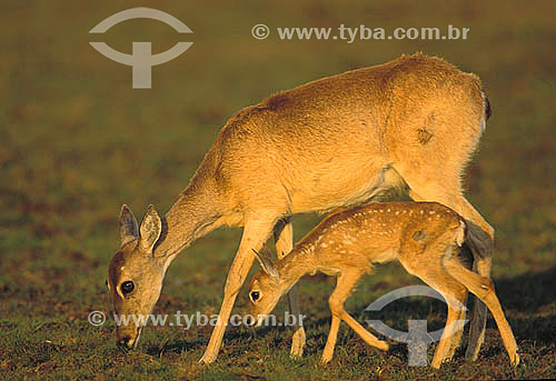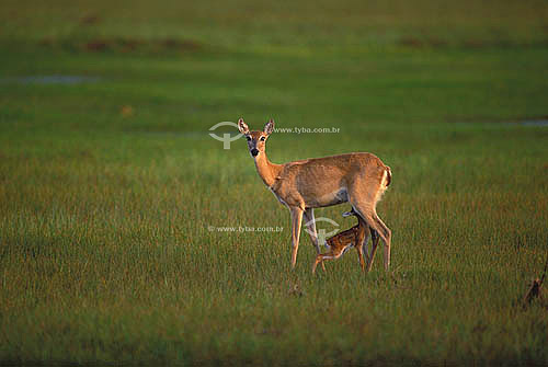 •  (Ozotocerus bezoarticus) Veado-campeiro com filhote - Pantanal Matogrossense - MT - Brasil