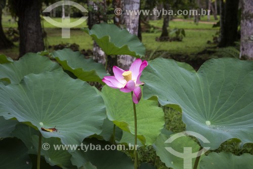 Flor-de-lótus (Nelumbo nucifera) em lago do Jardim Botânico do Rio de Janeiro - Rio de Janeiro - Rio de Janeiro (RJ) - Brasil