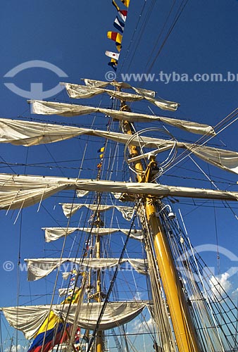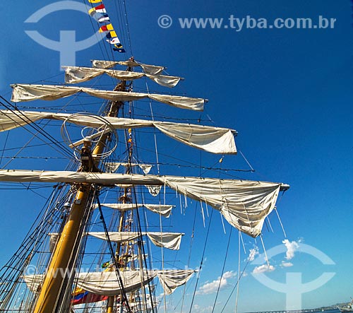 •  Assunto: Velas recolhidas do veleiro colombiano Gloria durante exposição de Grandes Veleiros, no Píer Mauá  / Local:  Rio de Janeiro - RJ - Brasil  / Data: Fev. 2010