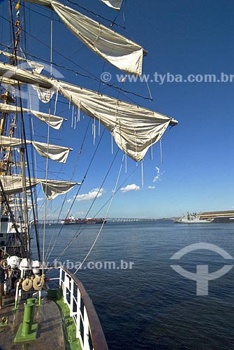 •  Assunto: Aspecto da mastreação do Cisne Branco durante a exposição de Grandes Veleiros, no Píer Mauá  / Local:  Rio de Janeiro - RJ - Brasil  / Data: Fev. 2010