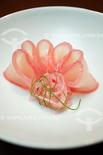 Detalhe de prato em restaurante japonês - gengibre vermelho - Cabo Frio - Rio de Janeiro (RJ) - Brasil