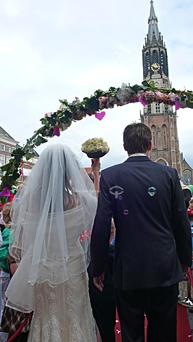 •  Casamento na cidade de Delft com a torre da  Igreja Nieuwe Kerk (Igreja Nova) ao fundo - Holanda