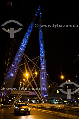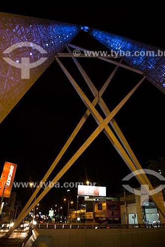 •  Tráfego na Avenida 85 com o monumento conhecido como Espetos no Viaduto João Alves de Queiroz ao fundo  - Goiânia - Goiás (GO) - Brasil