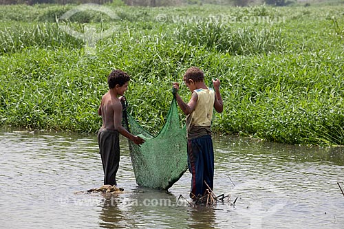Assunto: Crianças pescando na várzea do Rio Tietê- Vila Laurita / Local: São Paulo - Brasil / Data: 10/2010