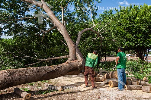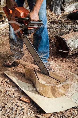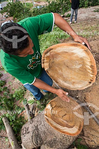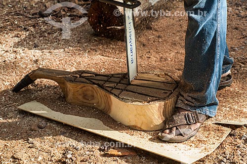 Assunto: Homem cortando árvore para fazer uma Viola de cocho - símbolo da identidade cultural mato-grossense / Local: Cuiabá - Mato Grosso (MT) - Brasil / Data: 12/2010