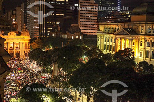 Vista de cima de manifestação a favor de Fernando Haddad - candidato à presidência pelo Partido dos Trabalhadores (PT) - em frente ao Palácio Pedro Ernesto (1923) - sede da Câmara Municipal do Rio de Janeiro - Rio de Janeiro - Rio de Janeiro (RJ) - Brasil