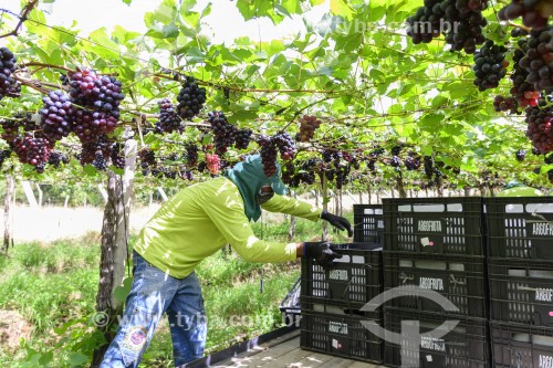 • Trabalhadores recolhendo caixas de Uva Vitória colhidas de parreira - Petrolina - Pernambuco (PE) - Brasil