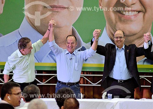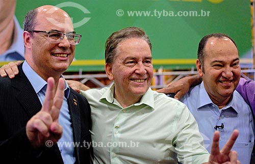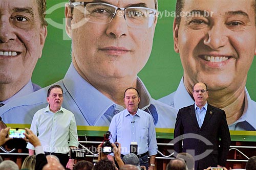 •  Pastor Everaldo, Wilson Witzel - candidato à governador pelo Partido Social Cristão (PSC) - e Paulo Rabello durante comício no Clube Monte Sinai  - Rio de Janeiro - Rio de Janeiro (RJ) - Brasil