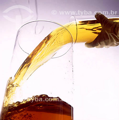 •  Combustível sendo despejado em um recipiente de um laboratório durante pesquisa