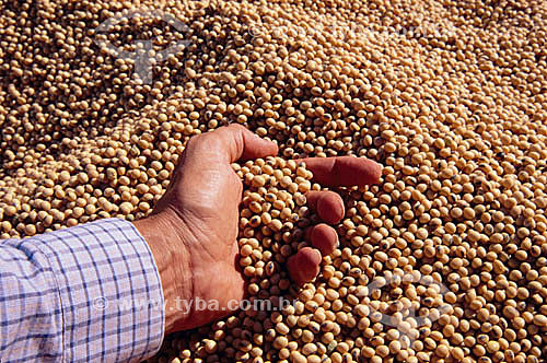 Subject: Detail of a hand holding soybeans