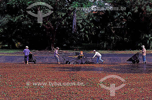 Subject: Rural worker spreading coffee beans for drying in a farm - Matao village - Sao Paulo state - Brasil - May 1996
