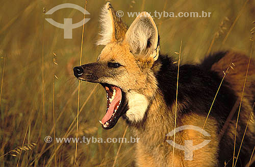Subject: Maned Wolf (Chrysocyon brachyurus) yawning - Serra da Canastra National Park - Minas Gerais State - Brazil