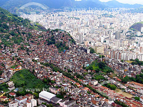 Subject: Aerial view of slum in Rio Comprido neighbourhood - Rio de Janeiro city - Rio de Janeiro state - Brazil